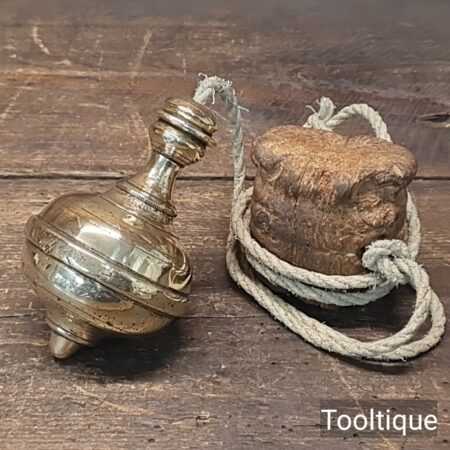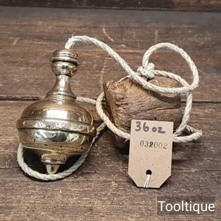 Vintage 4 ½” European Masons Brass Plumb Bob with cork offset packer, refurbished ready for use and in good used condition.