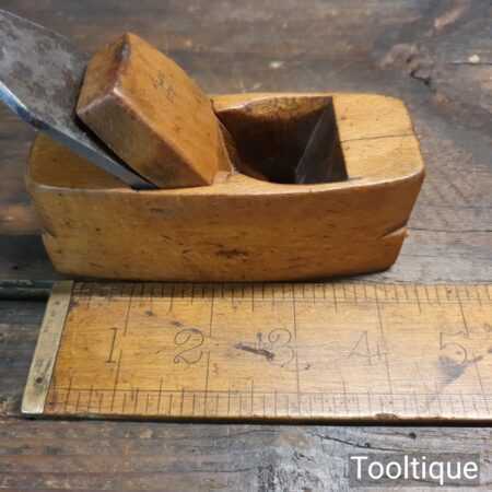 Vintage 4 ½” miniature Boxwood coffin shaped smoothing plane in good used condition. Note: This plane has been lapped flat and the iron have been refurbished ready for use. Note: age crack to the top area of the front of the plane, nothing serious that affects it’s use.