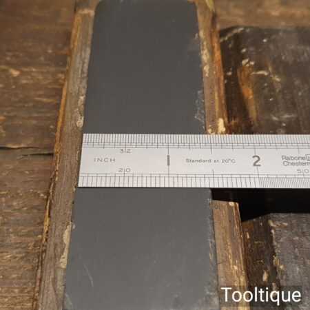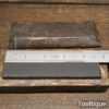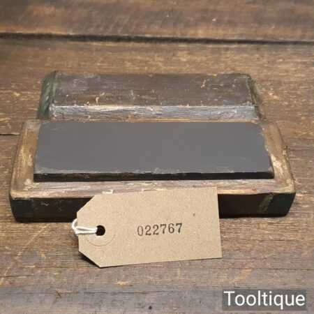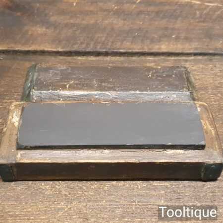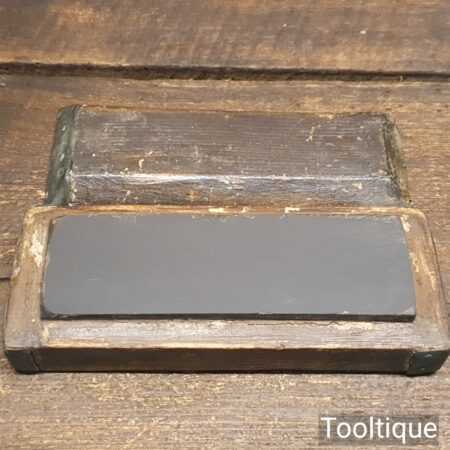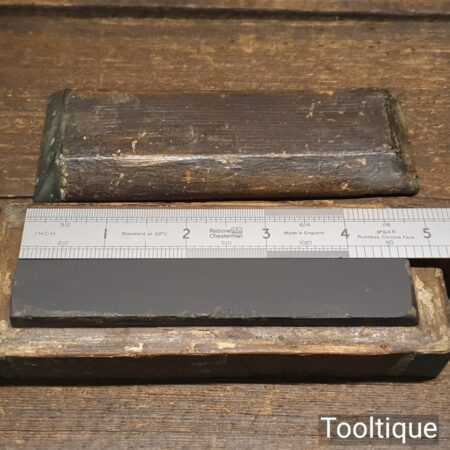 Vintage 4 ½” x 1 ½” Natural Slate oilstone in a pine box and in good used condition. Note: lapped flat ready for use.