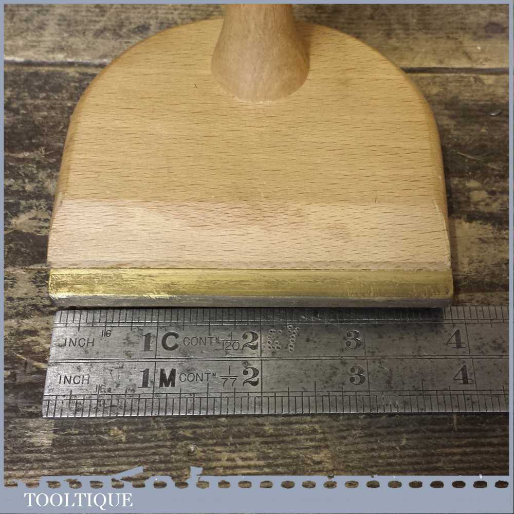 Vintage 4” beech wood and brass veneer hammer in good used condition.