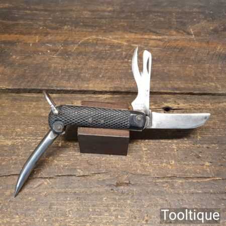 Vintage 4” G. Butler & Co. multi tool Pocket knife with ebony handle in good used condition.