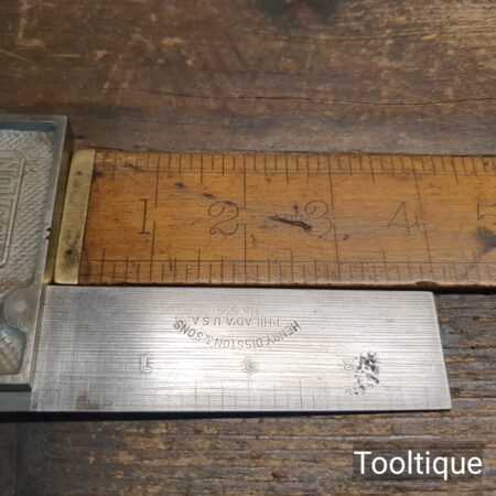 Vintage 4″ Henry Disston & Sons USA No: 5 1/2 cast steel Calibrated Square in very good used condition with most of its original nickel plating intact.