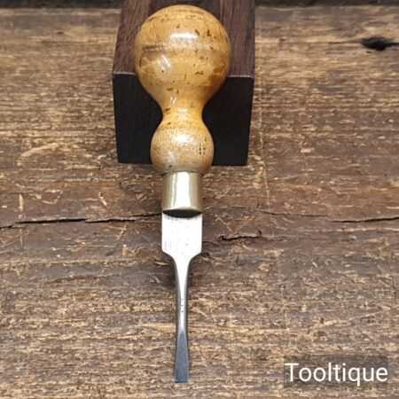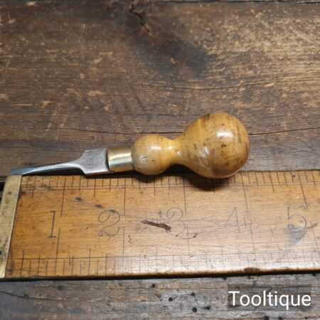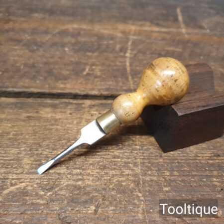 Vintage 4″ miniature boxwood turn screwdriver with a ⁵⁄₃₂” flat end in good used condition.