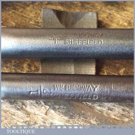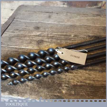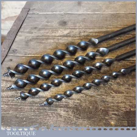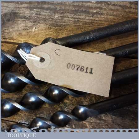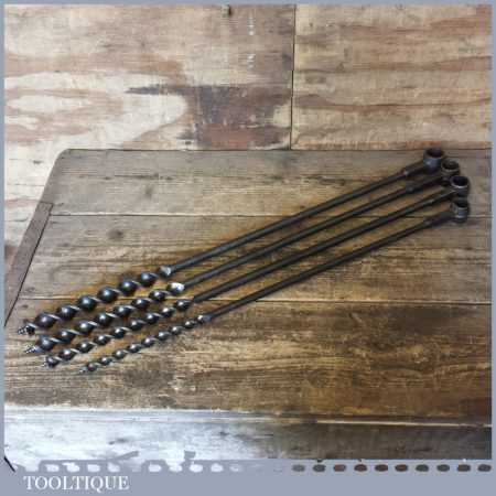 Set of 4 No: Vintage Ridgeway Scotch Barrel Eyed Timber Framing hand Auger Bits in good used condition. Sizes ½” 5/8” ¾” 7/8”
