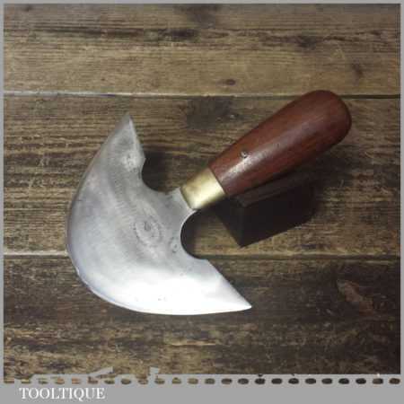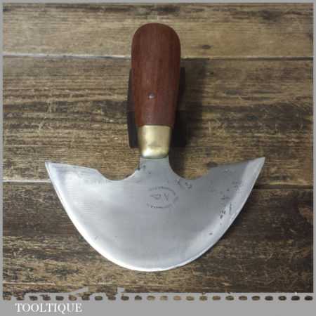Vintage 5 ½” Geo. Barnsley & Sons leatherworking half-moon cutter with mahogany handle in lightly used condition. These are nice quality tools with good steel made in around the 1960’s. This has been sharpened and now has a razor-sharp edge ready for use.