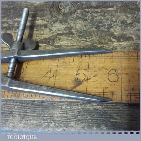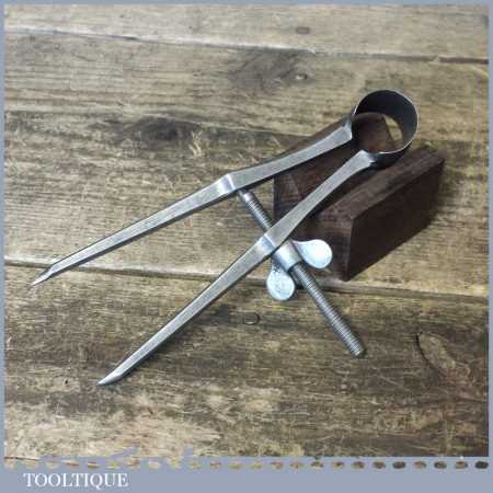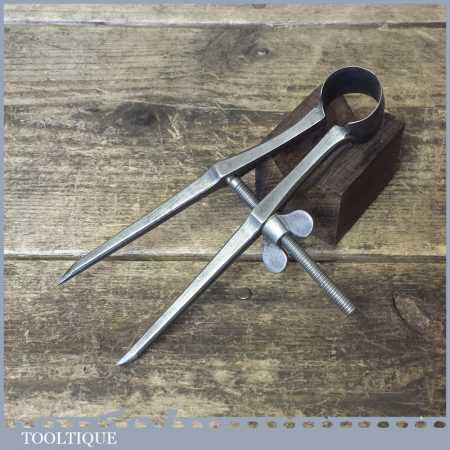 Interesting vintage 5 ¾” hand forged sprung steel square leg steel dividers which have a superior spring construction to those often used by engineers but with a stronger construction often seen on leatherworking dividers.