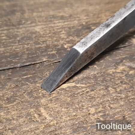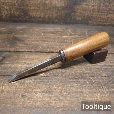 Vintage 5/16” Mortice or Pigsticker chisel with a beechwood handle, fully refurbished ready for use and in good used condition. All refurbished chisels are water cooled during the sharpening & Flattening process to ensure the tempering is not affected
