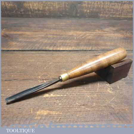 Vintage 5/16” straight woodcarving gouge chisel with beechwood handle in good used condition, fully refurbished sharpened and honed ready for use.