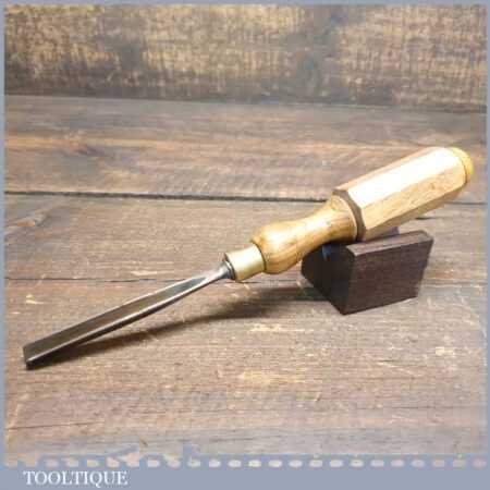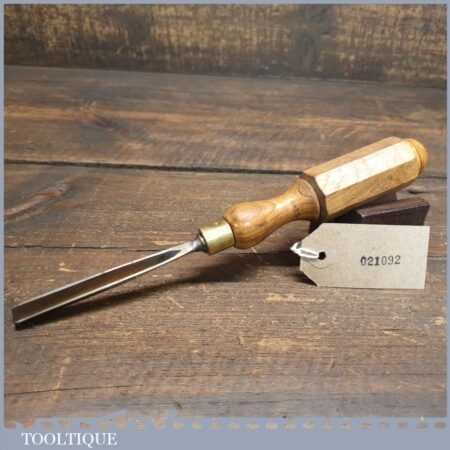 Vintage 5/16” straight woodcarving “V” parting chisel with London pattern hardwood handle in good used condition, fully refurbished sharpened and honed ready for use.