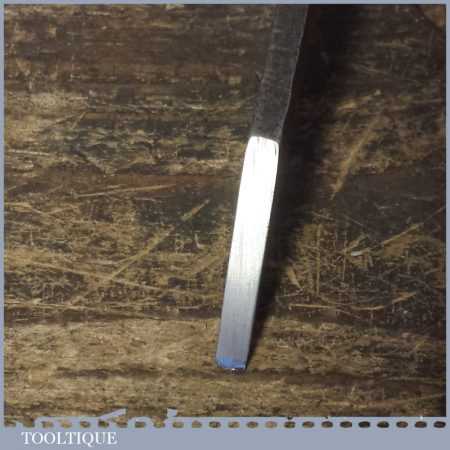 The chisel has been checked to ensure the tang is seated properly and the handle is solid and fit for use. All refurbished chisels are water cooled during the sharpening process to ensure the tempering is not affected. These old cast steel chisels are hand forged and far superior in quality because of the high carbon steel that was used which produces a keener edge, this was also generally used throughout the full length.