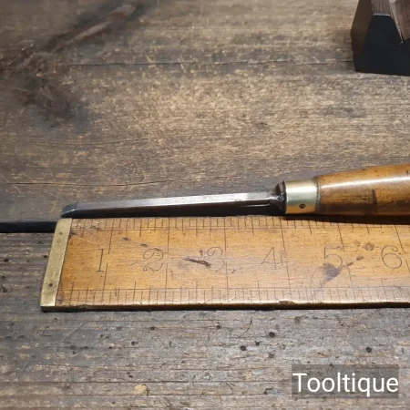 Vintage 5/32” Carpenters Firmer Chisel with a Beechwood Handle, refurbished ready for use and in good used condition. All refurbished chisels are water cooled during the sharpening & face flattening process to ensure the tempering is not affected.