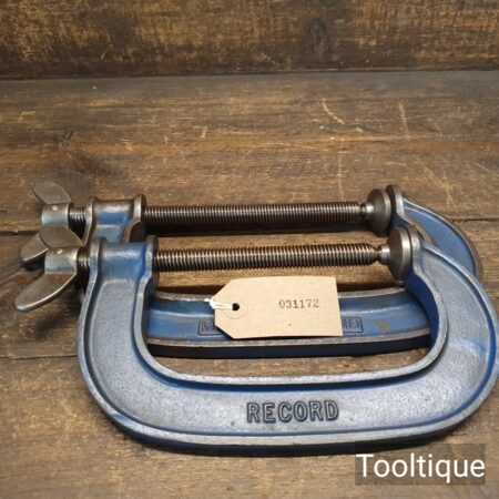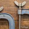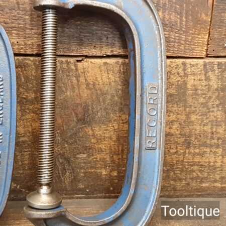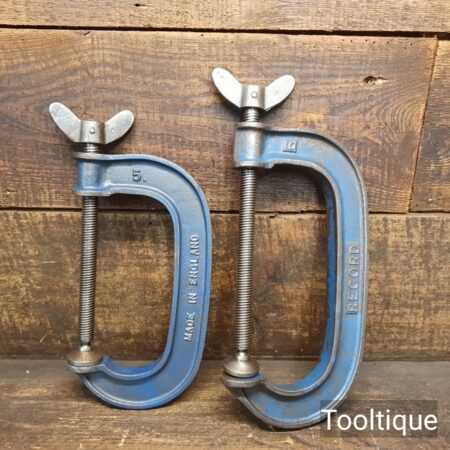 Vintage 5” + 6” Record England fine threaded cast steel G Clamps, refurbished ready for use and in good used condition.
