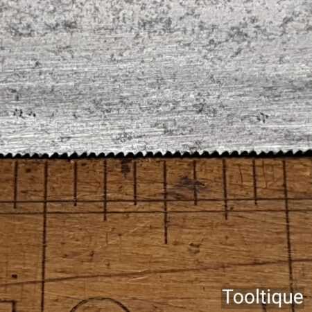 The saw has been thoroughly cleaned including under the handle, jointed, resharpened and set by hand so that all the hard work of getting an old vintage saw right has been undertaken. We do this so that the next sharpening is easier and no more than a quick freshen up would be required. Those who are familiar with sharpening will know this is no small job and requires skill, effort and time to achieve good results