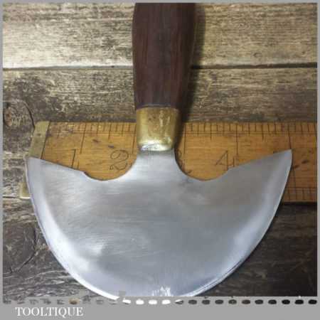 Vintage 5” Geo. Barnsley & Sons saddlers round knife with Rosewood handle in unused condition. This has been sharpened and now has a razor-sharp edge ready for use. Note: 2 indents on the iron away from the cutting edge, this won’t affect its use for many years if sharpened correctly, if at all when it wears down that far the bevel should eliminate this.