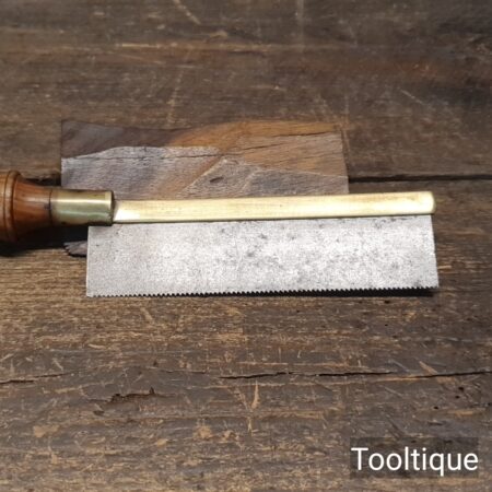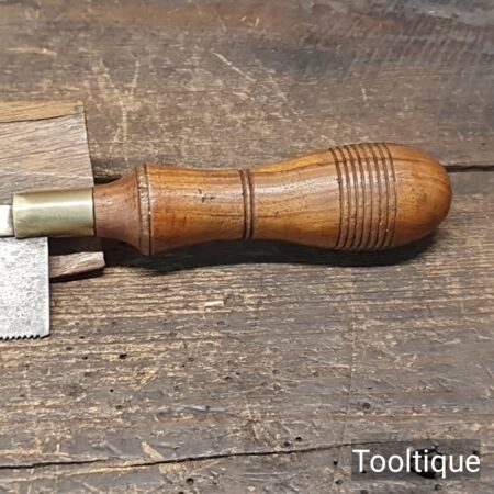 Vintage 5“ Long Brass Back Gents 15 Tpi saw with a Rosewood Handle, refurbished ready for use and in good used condition. Note: Sharpened Rip.