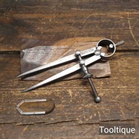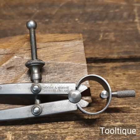 Vintage 5” Moore & Wright 5” straight spring dividers with protective point cover refurbished ready for use and good used condition.