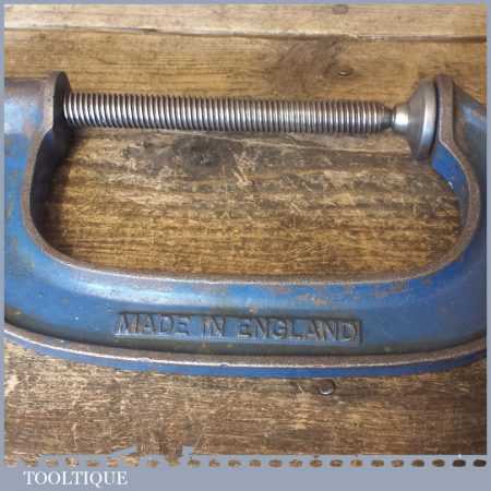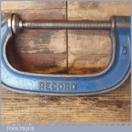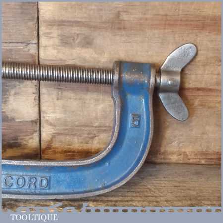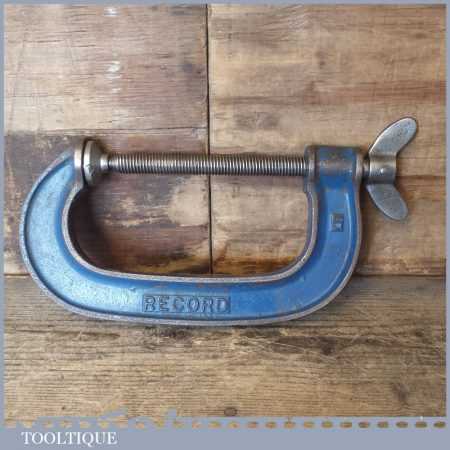 Vintage 5” Record tools heavy duty G Clamp with wing tightening grip in good used condition.