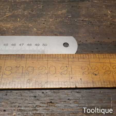 Vintage 50cm 0.7 single sided steel metric contraction ruler in good used condition.