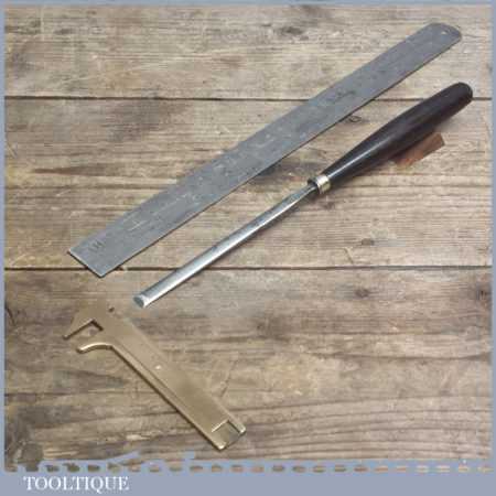 Vintage forged steel carving chisel by MARPLES & SONS in good condition and has been sharpened & honed ready for use, this very shallow gouge measures approx 5/8” wide with ebony handle.
