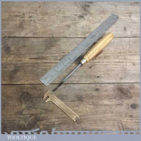 Vintage forged steel carving chisel by AURIOU (Lie Nielson) in good condition and has been sharpened & honed ready for use, this spoon V parting tool gouge measures approx 5mm wide.