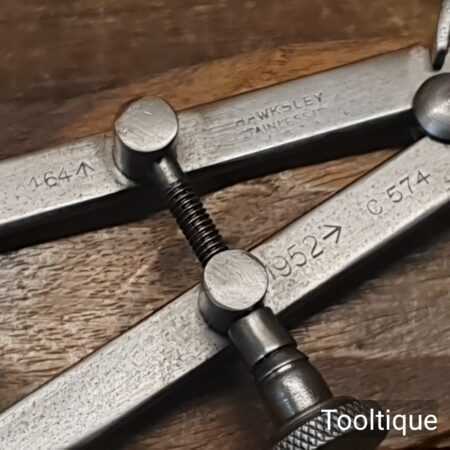 Vintage 6” Hawksley parallel circle scribe spring dividers, refurbished ready for use and in good used condition. Stamped with Broad Arrow and date 1952.