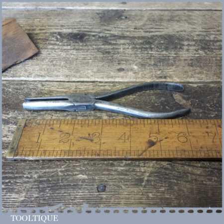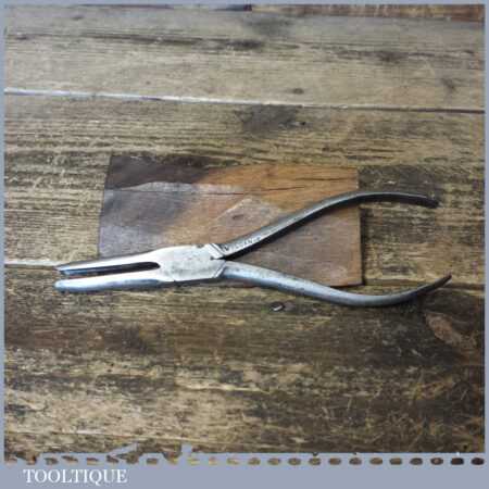 Vintage 6” hollow jaw, box jointed duck bill pliers in good used condition.
