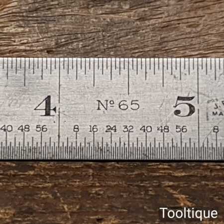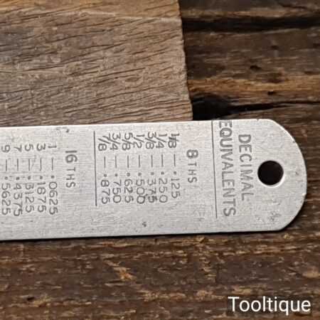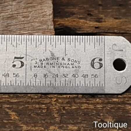 Vintage 6″ John Rabone & Sons No: 65 cast steel single sided imperial rule with decimal conversion chart on the opposite side in good used condition