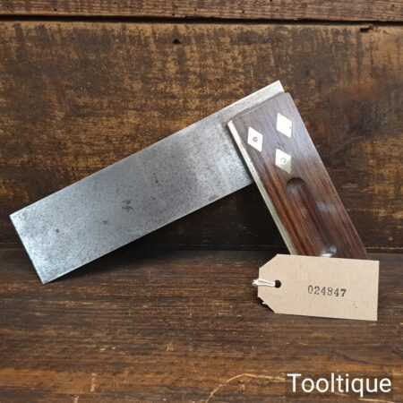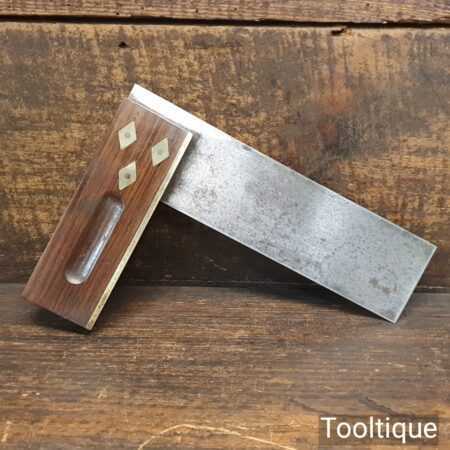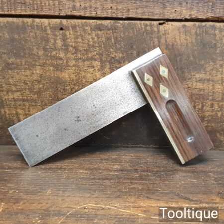Vintage 6” mahogany and brass try square in good used condition, tested for square