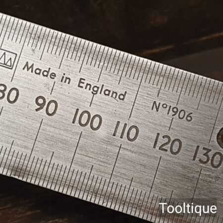 Vintage 6” Rabone Chesterman No: 1906 calibrated steel set square, refurbished ready for use and good used condition.