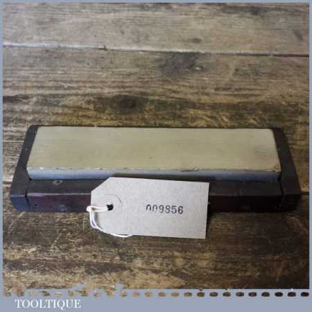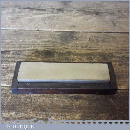 Vintage 6” x 1 ¼” natural Belgian Coticule honing stone on a wooden base (no lid) in good used condition. Note: this has been lapped flat ready for use.