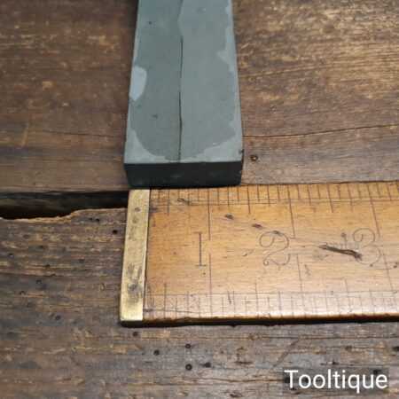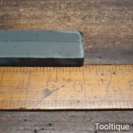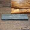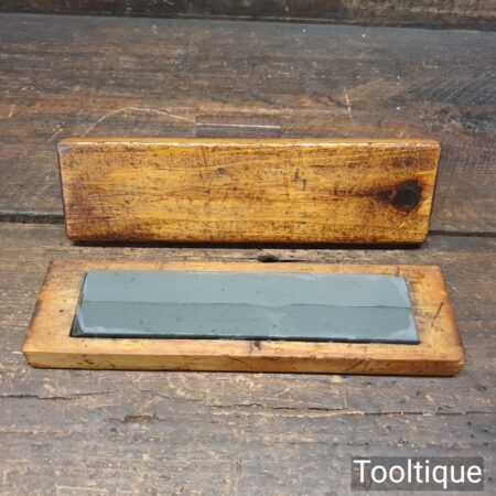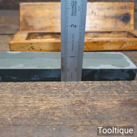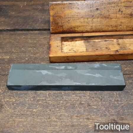 Vintage 6″ x 1 ½” Lyn Idwal Welsh natural fine honing stone in beechwood box, lapped flat and ready for use. Note: The seam seen is where the stone was jointed by the maker, doesn’t affect its use but shows how prized they valued the material when cutting the stones. Hence price.