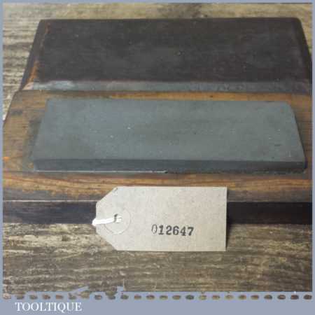 Vintage course grit Carborundum oil stone in a pine box measuring approx 6” x 2” in good used condition. Note: lapped flat ready for use.