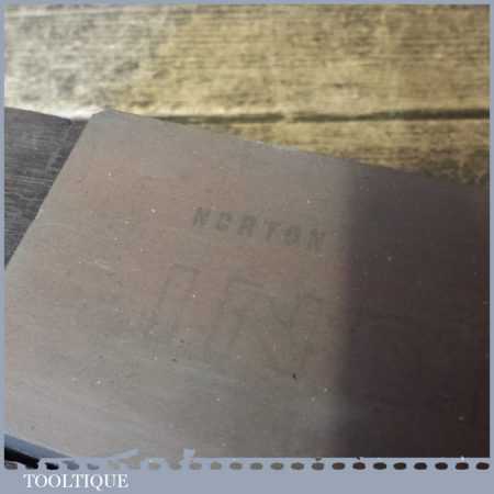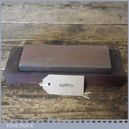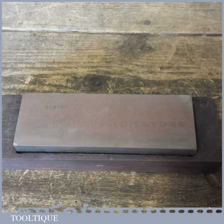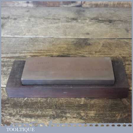 Vintage 6” x 2” Norton India medium grit oil stone on a mahogany wooden base (No Lid), in good used condition.