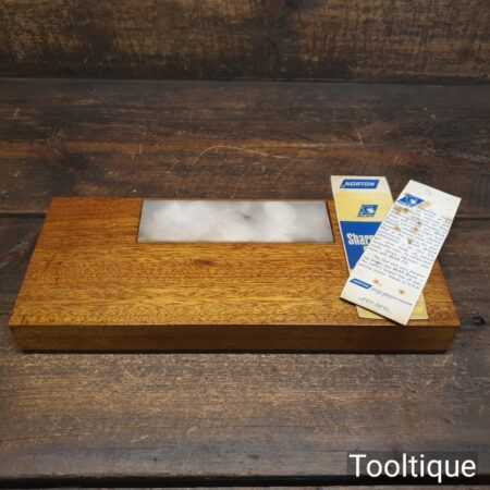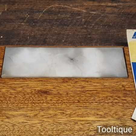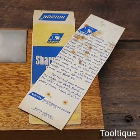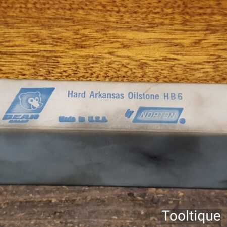 Vintage 6”x 2” Norton Bear Hard Arkansas honing stone in wooden drainage frame and in good used condition. Best used with a very fine lapping fluid such as our Acutus that will help keep the fine stone pores open for better cutting performance