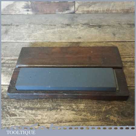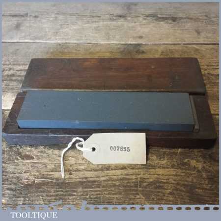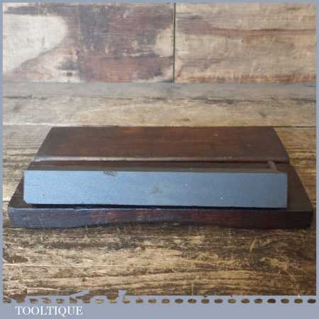 Vintage 7 ¾” x 2” medium grit oil stone in a Mahogany wooden box in good usable condition.