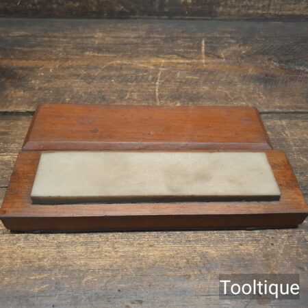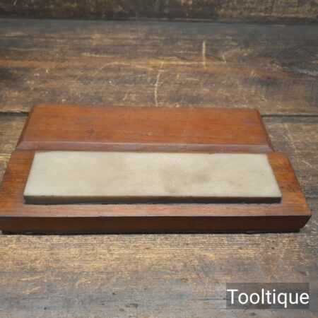 Vintage 7 ¾” x 2” Washita natural fine oil stone with wooden box, in good used condition and lapped flat ready for use.