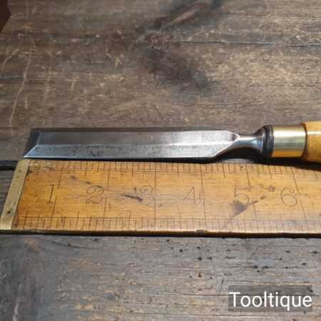 Vintage 7/8” Robert Sorby Bevelled edge chisel with a boxwood handle, fully refurbished ready for use and in good used condition. All refurbished chisels are water cooled during the sharpening & Flattening process to ensure the tempering is not affected.