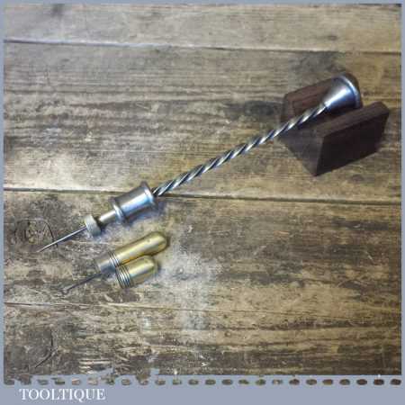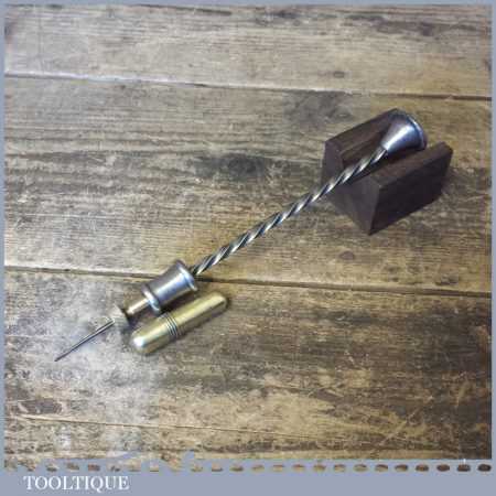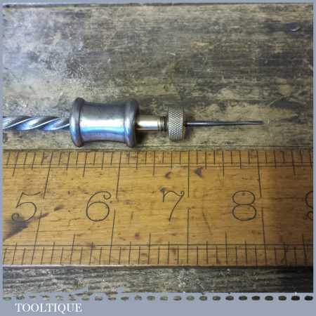 Vintage 7” Archimedes drill made by Hobbies of Dereham in good used condition with one extra bit in a separate canister type container.