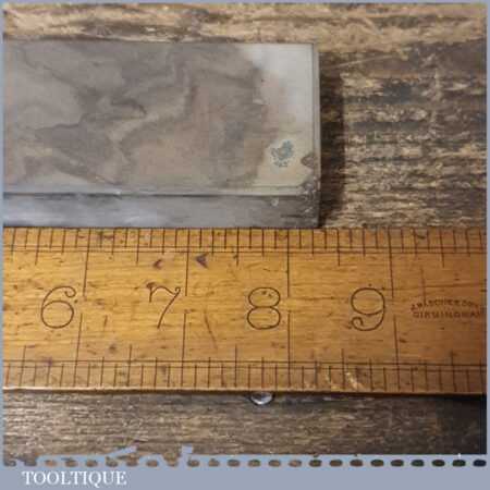 Vintage 8 ¼” x 1 ¾” medium grit oil stone in good used condition. Note: Lapped flat ready for use