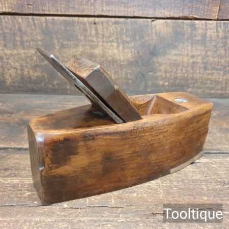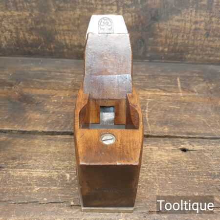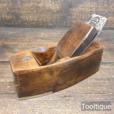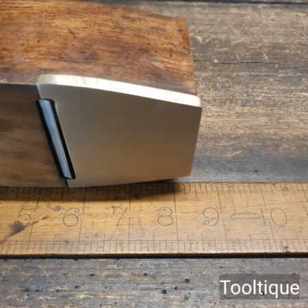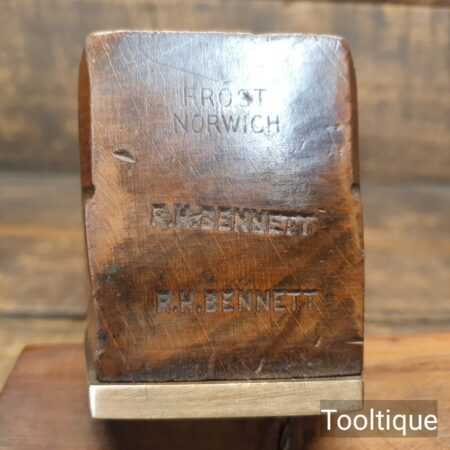 Vintage 8 ½” Frost of Norwich beechwood coffin shaped smoothing plane with brass front sole infill in good used condition. Note: This plane has been lapped flat and the iron and chip breaker have been refurbished ready for use.