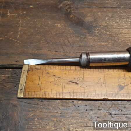 Vintage 8 ½” Guy’s hand tools Ltd ratchet screwdriver with ¼” Flat end, in good used condition and ready for use.