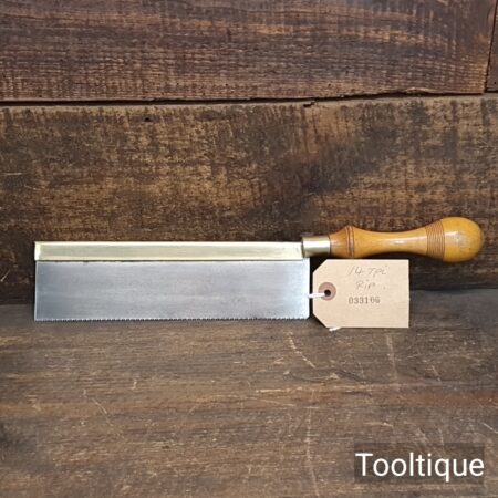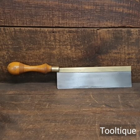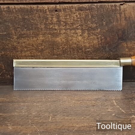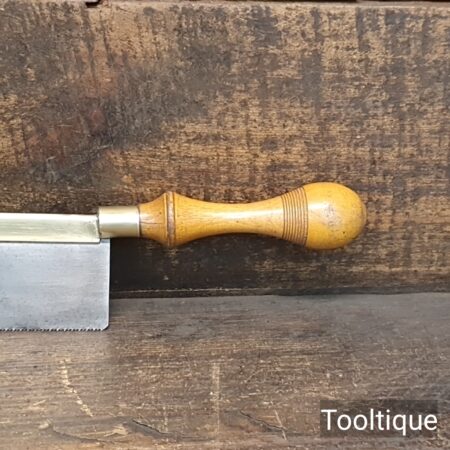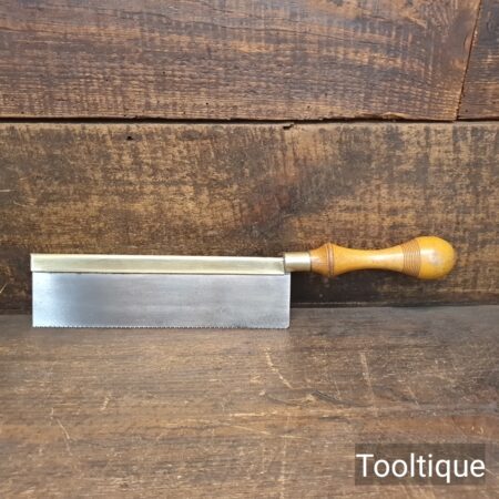 Vintage 8” Long Brass Back Gents 14 Tpi saw with a Beechwood Handle, refurbished ready for use and in good used condition. Note: Sharpened Rip.
