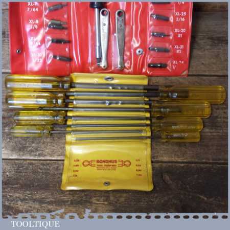 Vintage 8 Piece Bondhus ball ended Allen key set + Elexcite ratchet screwdriver set in good used condition, ready for use