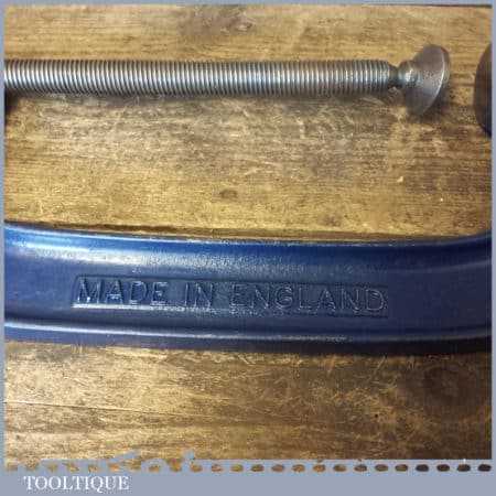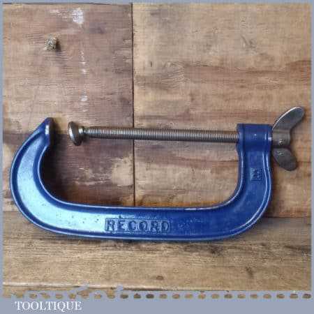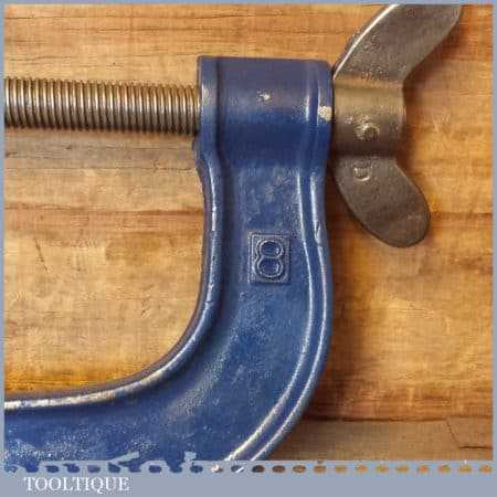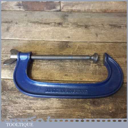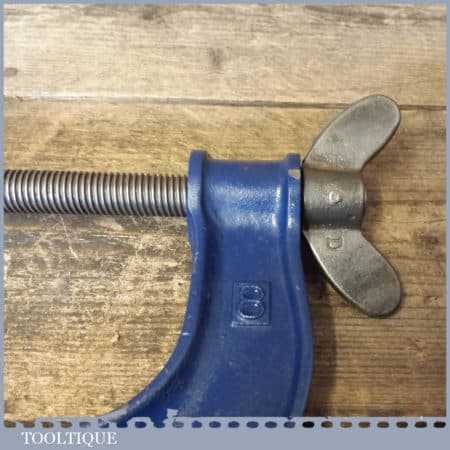Vintage 8” Record heavy duty G Clamp with wing tightening grip refurbished ready for use.