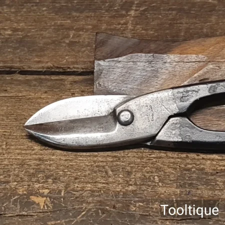 Vintage 8” Sheffield Maker Sheet Metal Tinsnips, Sharpened & refurbished ready for use and in good used condition. Note: Tested on Tin and cut like a new pair.