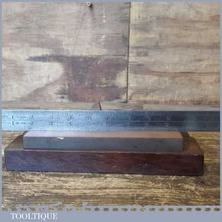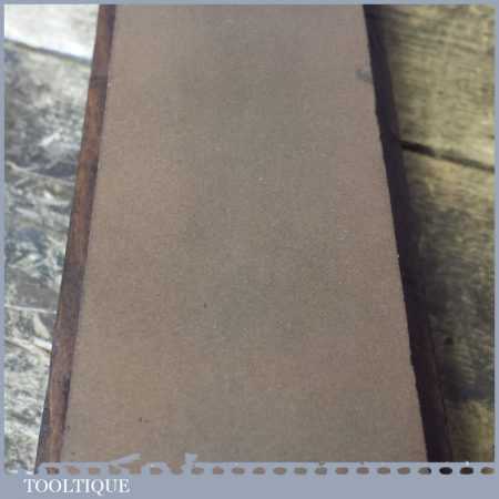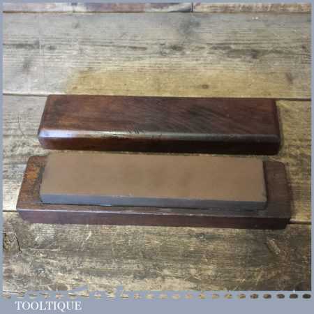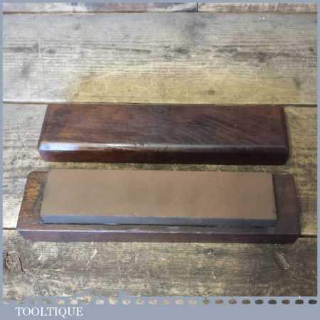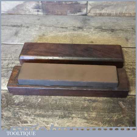 Vintage approx 8” x 1 3/4” India combination oil stone in a mahogany wooden box in good used condition. Note: this stone has been lapped flat ready for use.