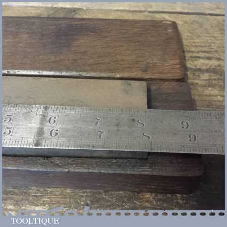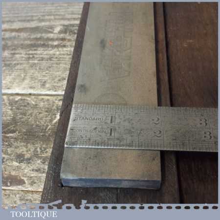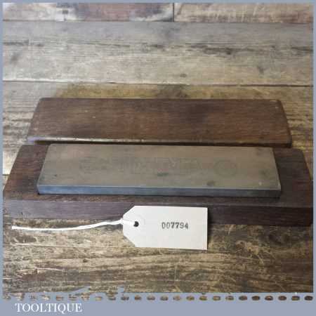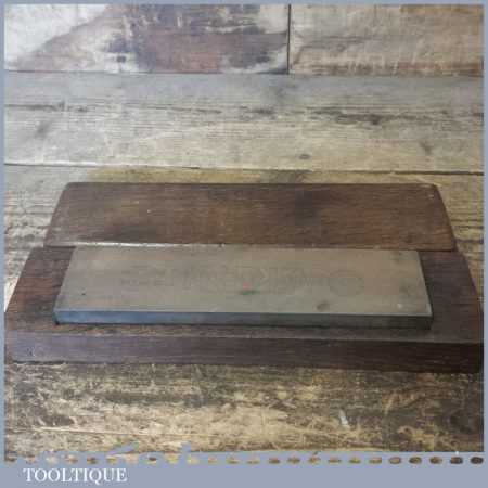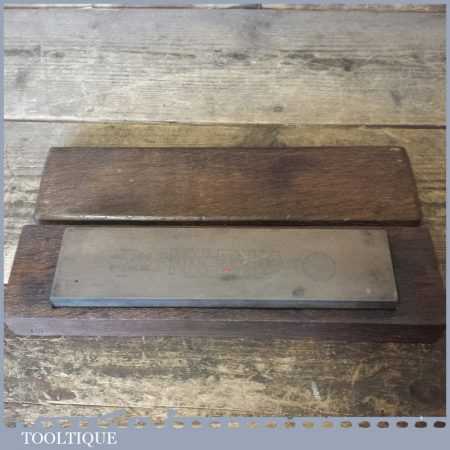 Vintage 8” x 2″ medium grit Pike India oil stone in an old oak box in good usable condition.