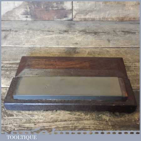 Vintage 8” x 2” fine grit oil stone in a Mahogany wooden box in good useable condition. Note: Some small dink marks in the stone, although still quite useable, hence price