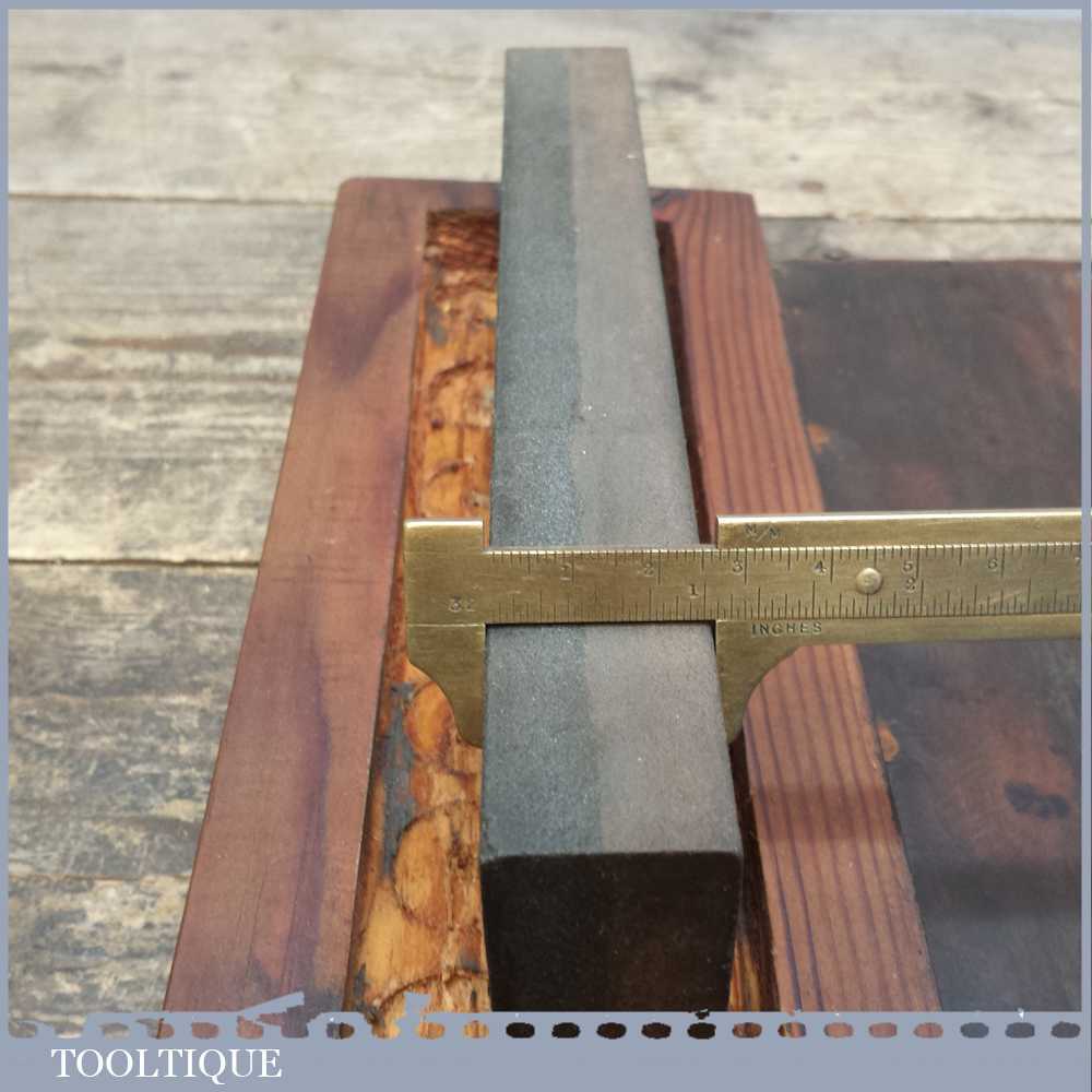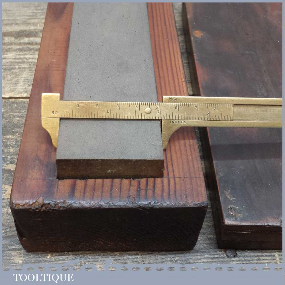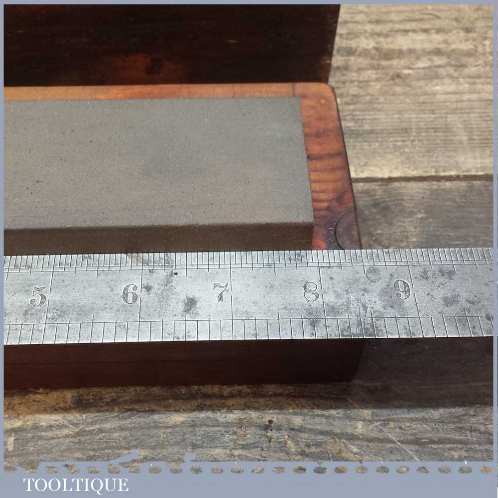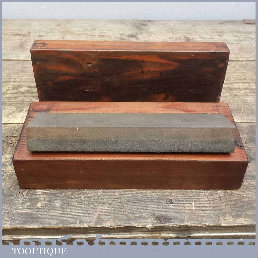 Vintage 8” x 2” India Oil stone in large protective pine box in good used condition.