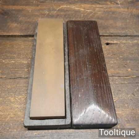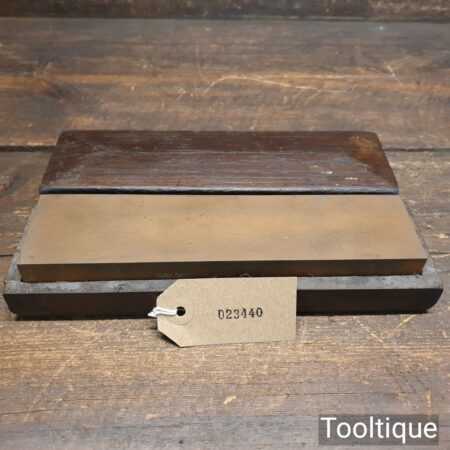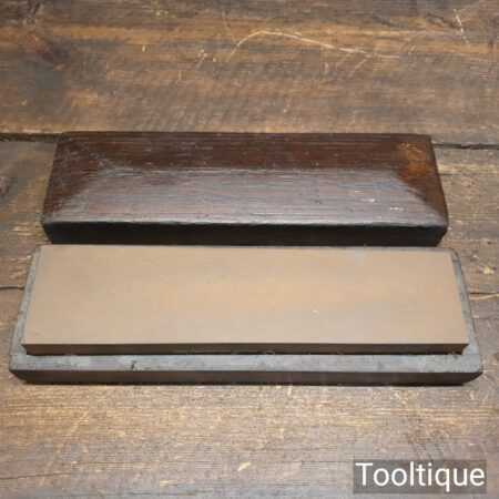 Vintage 8” x 2” India oil stone in wooden box and in good used condition. Note: lapped flat ready for use.